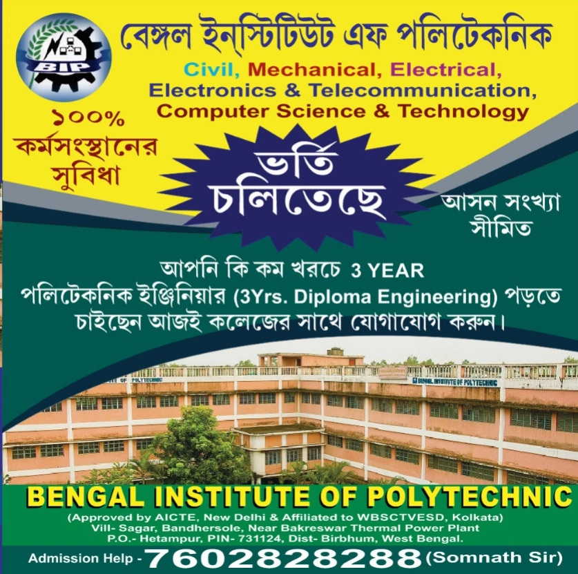 ADMISSION GOING ON BENGAL INSTITUTE OF POLYTECHNIC - DUBRAJPUR (2026-2027)